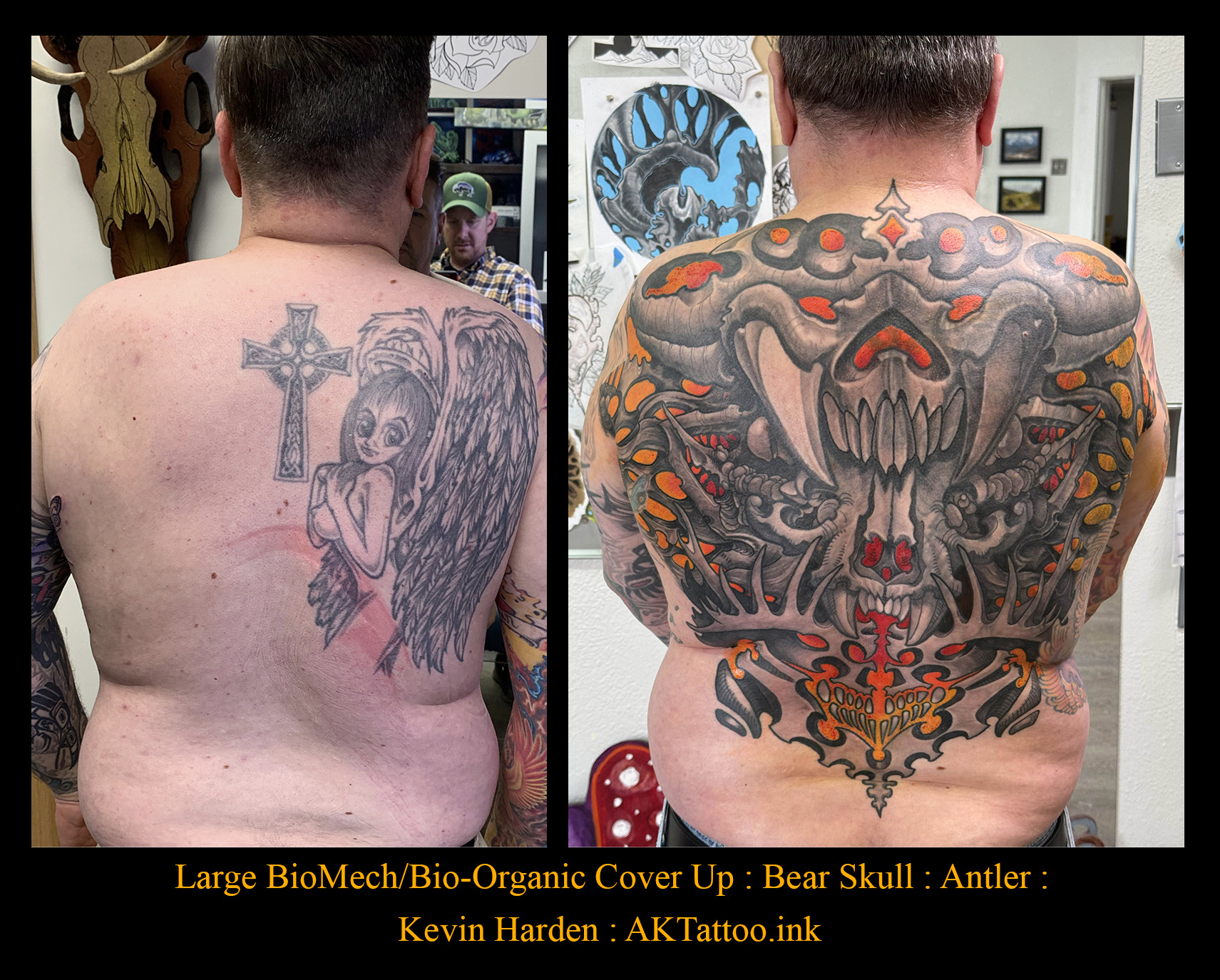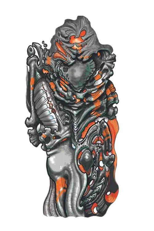 Kevin specializes in Bio-Organica (his signature Organic Mech style), and surreal nature-based imagery. Biomechanical. Neo-Traditional. His technique is heavily influenced by Alphonse Mucha and the Art Nouveau movement.