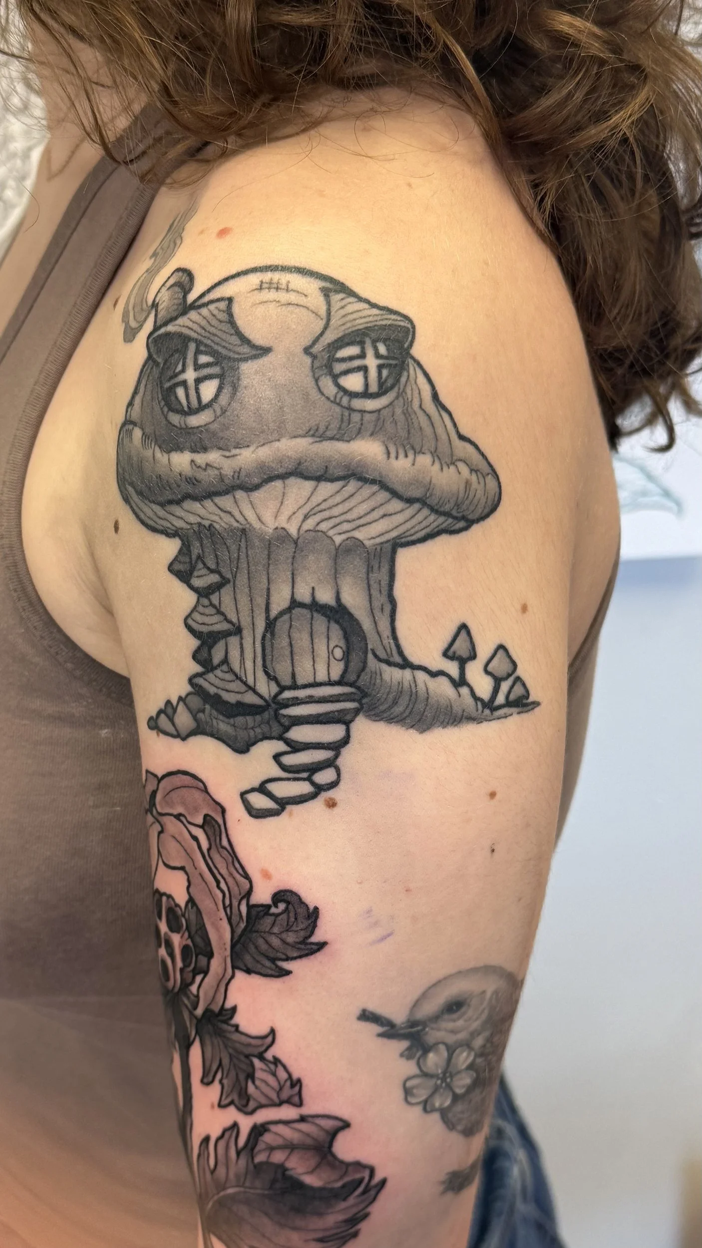 Kevin specializes in Neo-Traditional, Bio-Organica (his signature Organic Mech style), and surreal nature-based imagery. His technique is heavily influenced by Alphonse Mucha and the Art Nouveau movement — fluid, organic, and unmistakably his own.
