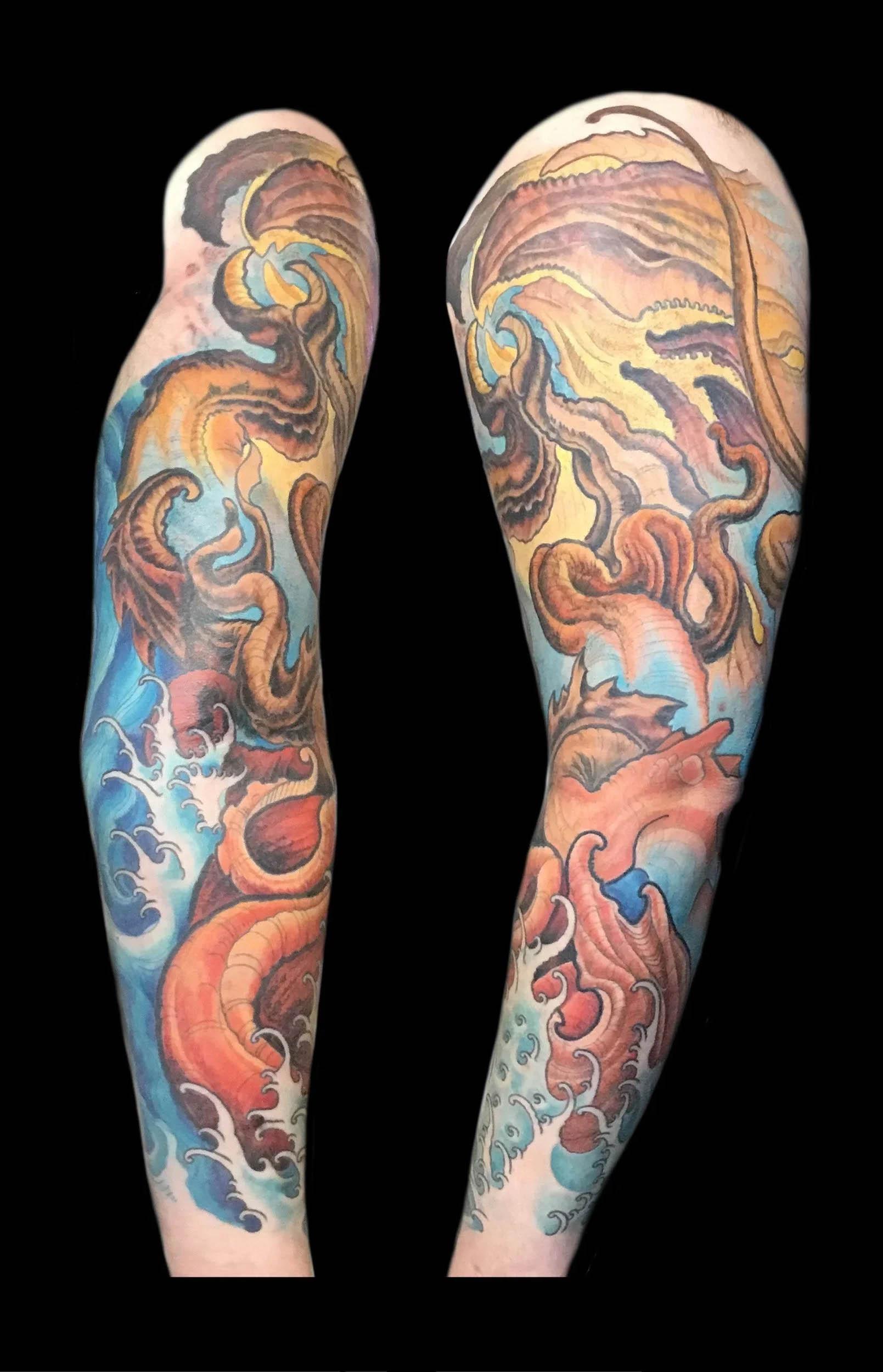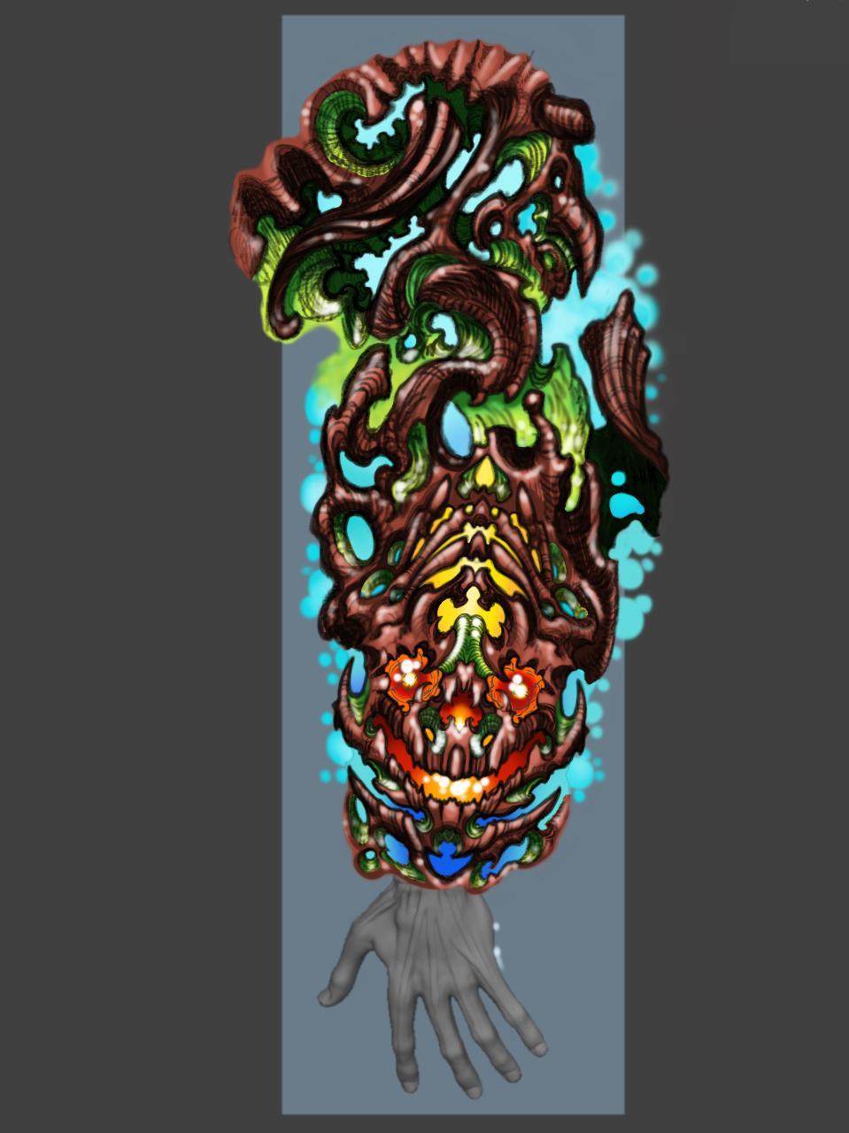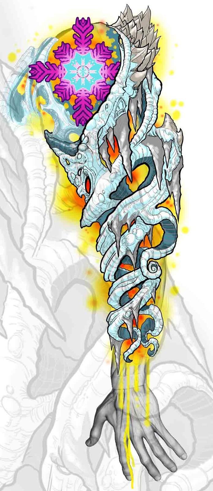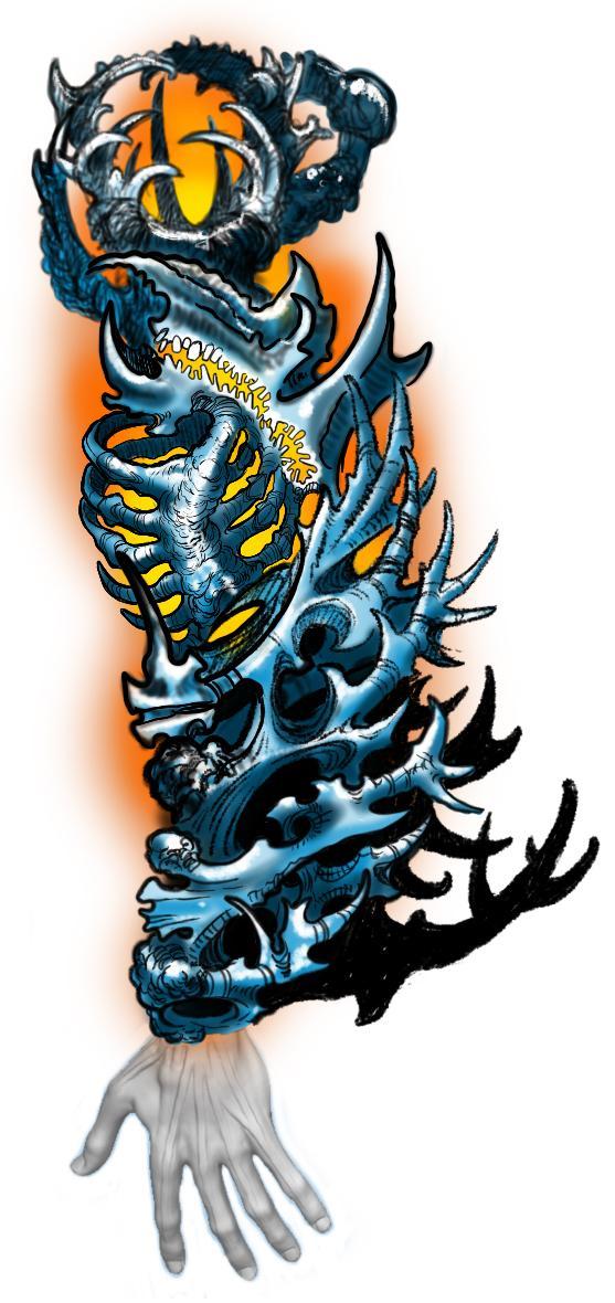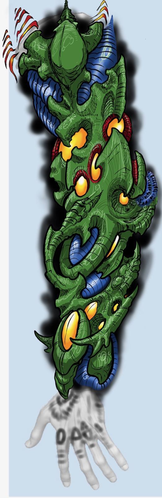 Kevin specializes in Bio-Organica (his signature Organic Mech style), and surreal nature-based imagery. Biomechanical. Neo-Traditional. His technique is heavily influenced by Alphonse Mucha and the Art Nouveau movement.